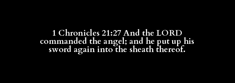 1 Chronicles 21:27 And the LORD commanded the angel; and he put up his sword again into the sheath thereof.