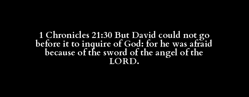 1 Chronicles 21:30 But David could not go before it to inquire of God: for he was afraid because of the sword of the angel of the LORD.
