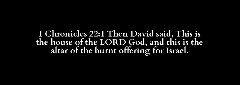 1 Chronicles 22:1 Then David said, This is the house of the LORD God, and this is the altar of the burnt offering for Israel.