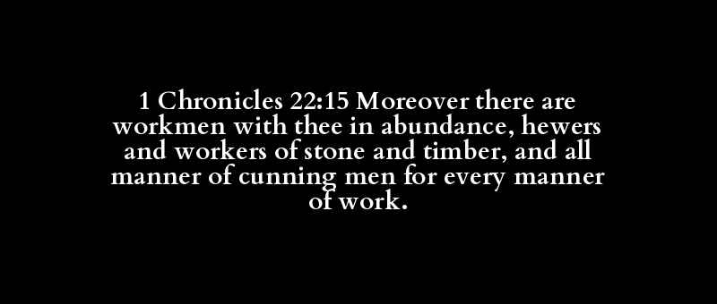 1 Chronicles 22:15 Moreover there are workmen with thee in abundance, hewers and workers of stone and timber, and all manner of cunning men for every manner of work.