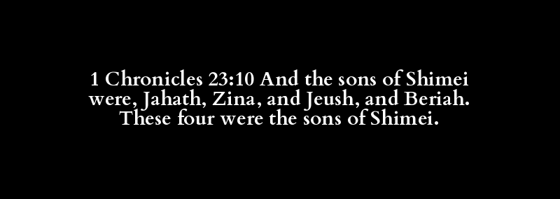 1 Chronicles 23:10 And the sons of Shimei were, Jahath, Zina, and Jeush, and Beriah. These four were the sons of Shimei.