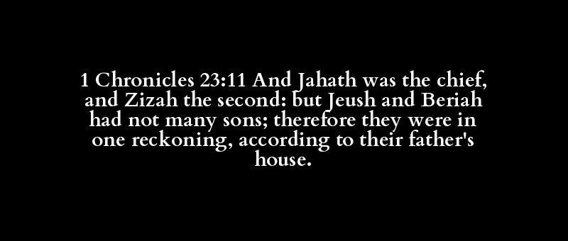 1 Chronicles 23:11 And Jahath was the chief, and Zizah the second: but Jeush and Beriah had not many sons; therefore they were in one reckoning, according to their father's house.