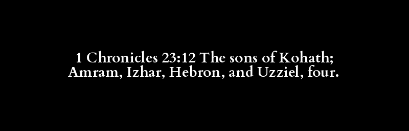 1 Chronicles 23:12 The sons of Kohath; Amram, Izhar, Hebron, and Uzziel, four.