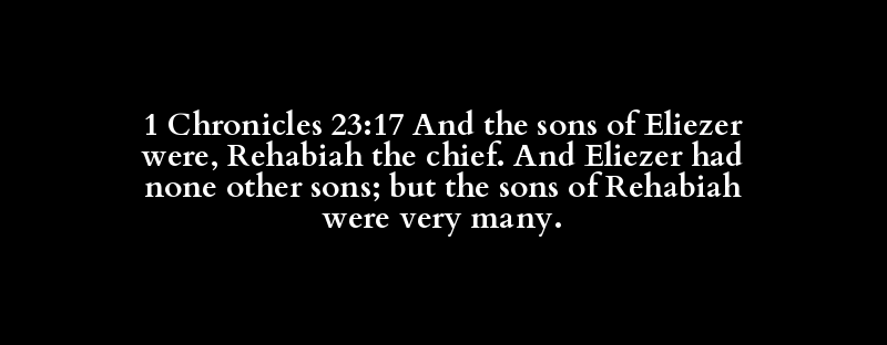 1 Chronicles 23:17 And the sons of Eliezer were, Rehabiah the chief. And Eliezer had none other sons; but the sons of Rehabiah were very many.