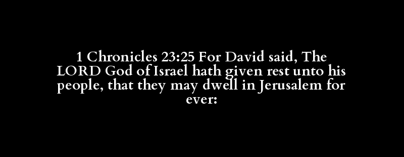 1 Chronicles 23:25 For David said, The LORD God of Israel hath given rest unto his people, that they may dwell in Jerusalem for ever: