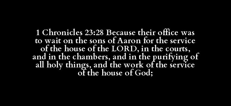 1 Chronicles 23:28 Because their office was to wait on the sons of Aaron for the service of the house of the LORD, in the courts, and in the chambers, and in the purifying of all holy things, and the work of the service of the house of God;