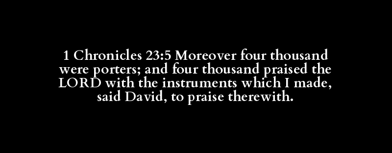 1 Chronicles 23:5 Moreover four thousand were porters; and four thousand praised the LORD with the instruments which I made, said David, to praise therewith.