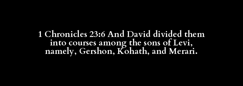 1 Chronicles 23:6 And David divided them into courses among the sons of Levi, namely, Gershon, Kohath, and Merari.