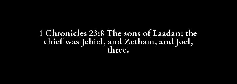 1 Chronicles 23:8 The sons of Laadan; the chief was Jehiel, and Zetham, and Joel, three.