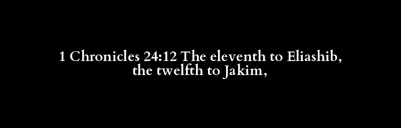 1 Chronicles 24:12 The eleventh to Eliashib, the twelfth to Jakim,