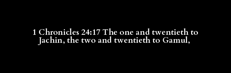 1 Chronicles 24:17 The one and twentieth to Jachin, the two and twentieth to Gamul,