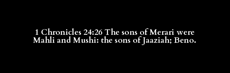 1 Chronicles 24:26 The sons of Merari were Mahli and Mushi: the sons of Jaaziah; Beno.