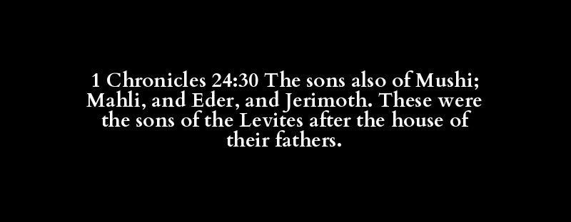 1 Chronicles 24:30 The sons also of Mushi; Mahli, and Eder, and Jerimoth. These were the sons of the Levites after the house of their fathers.