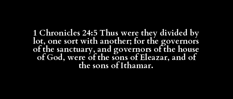 1 Chronicles 24:5 Thus were they divided by lot, one sort with another; for the governors of the sanctuary, and governors of the house of God, were of the sons of Eleazar, and of the sons of Ithamar.
