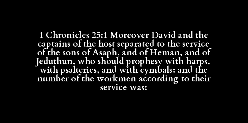 1 Chronicles 25:1 Moreover David and the captains of the host separated to the service of the sons of Asaph, and of Heman, and of Jeduthun, who should prophesy with harps, with psalteries, and with cymbals: and the number of the workmen according to their service was: