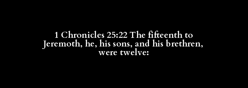 1 Chronicles 25:22 The fifteenth to Jeremoth, he, his sons, and his brethren, were twelve: