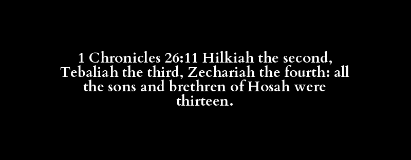 1 Chronicles 26:11 Hilkiah the second, Tebaliah the third, Zechariah the fourth: all the sons and brethren of Hosah were thirteen.