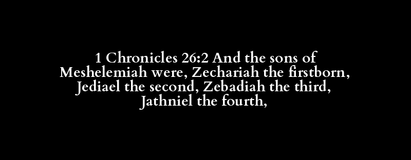 1 Chronicles 26:2 And the sons of Meshelemiah were, Zechariah the firstborn, Jediael the second, Zebadiah the third, Jathniel the fourth,