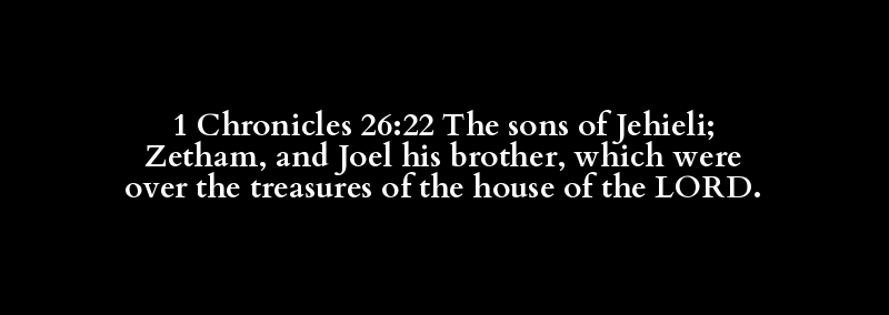 1 Chronicles 26:22 The sons of Jehieli; Zetham, and Joel his brother, which were over the treasures of the house of the LORD.