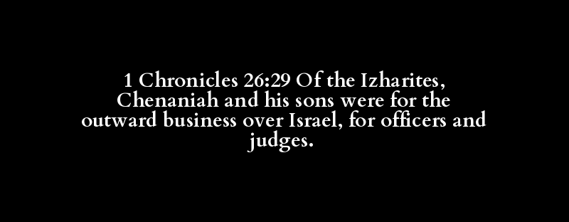 1 Chronicles 26:29 Of the Izharites, Chenaniah and his sons were for the outward business over Israel, for officers and judges.