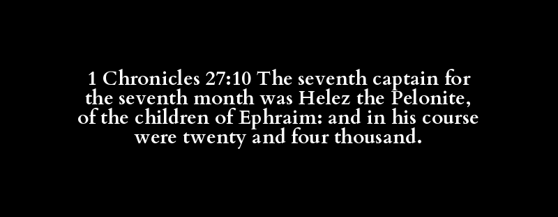 1 Chronicles 27:10 The seventh captain for the seventh month was Helez the Pelonite, of the children of Ephraim: and in his course were twenty and four thousand.