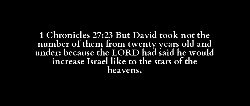 1 Chronicles 27:23 But David took not the number of them from twenty years old and under: because the LORD had said he would increase Israel like to the stars of the heavens.