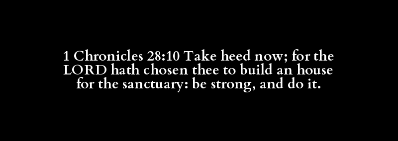 1 Chronicles 28:10 Take heed now; for the LORD hath chosen thee to build an house for the sanctuary: be strong, and do it.