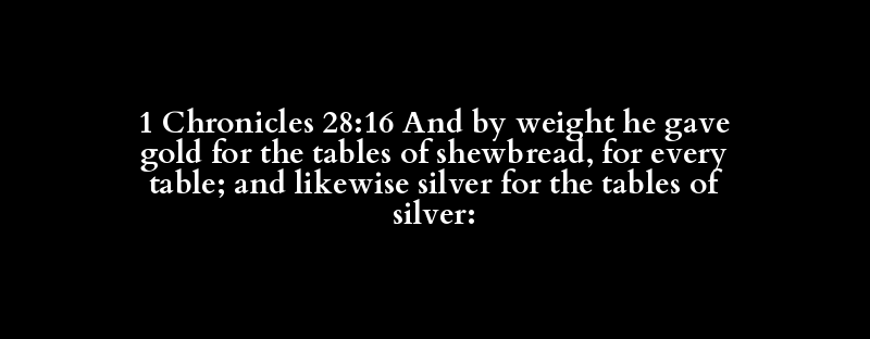 1 Chronicles 28:16 And by weight he gave gold for the tables of shewbread, for every table; and likewise silver for the tables of silver: