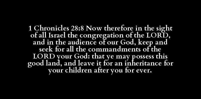 1 Chronicles 28:8 Now therefore in the sight of all Israel the congregation of the LORD, and in the audience of our God, keep and seek for all the commandments of the LORD your God: that ye may possess this good land, and leave it for an inheritance for your children after you for ever.