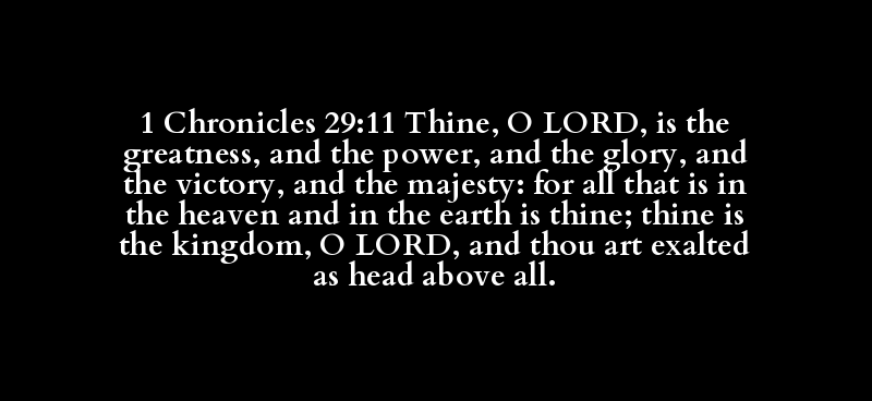 1 Chronicles 29:11 Thine, O LORD, is the greatness, and the power, and the glory, and the victory, and the majesty: for all that is in the heaven and in the earth is thine; thine is the kingdom, O LORD, and thou art exalted as head above all.
