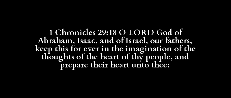 1 Chronicles 29:18 O LORD God of Abraham, Isaac, and of Israel, our fathers, keep this for ever in the imagination of the thoughts of the heart of thy people, and prepare their heart unto thee: