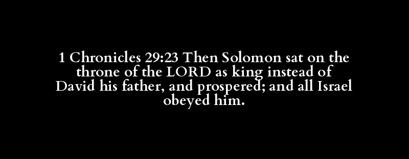 1 Chronicles 29:23 Then Solomon sat on the throne of the LORD as king instead of David his father, and prospered; and all Israel obeyed him.