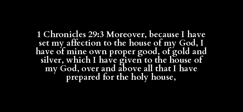 1 Chronicles 29:3 Moreover, because I have set my affection to the house of my God, I have of mine own proper good, of gold and silver, which I have given to the house of my God, over and above all that I have prepared for the holy house,