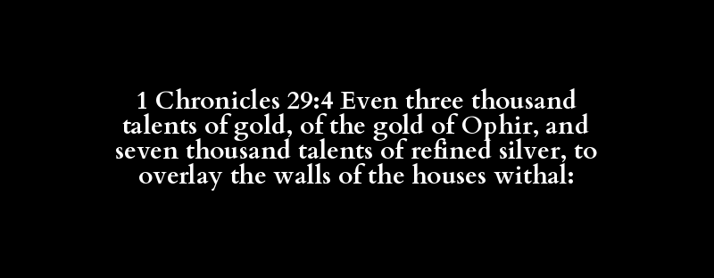 1 Chronicles 29:4 Even three thousand talents of gold, of the gold of Ophir, and seven thousand talents of refined silver, to overlay the walls of the houses withal: