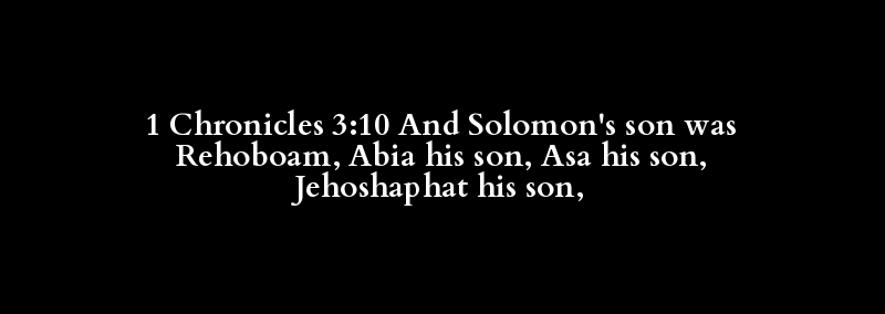 1 Chronicles 3:10 And Solomon's son was Rehoboam, Abia his son, Asa his son, Jehoshaphat his son,