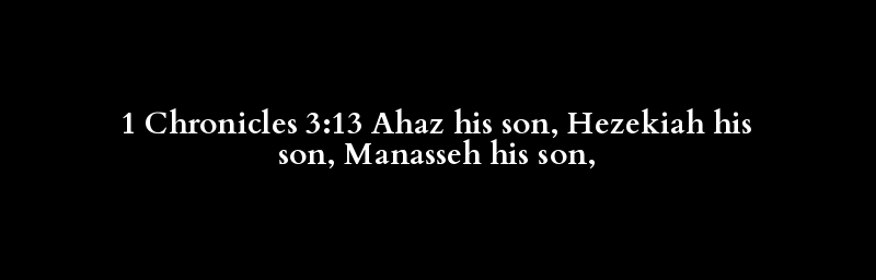 1 Chronicles 3:13 Ahaz his son, Hezekiah his son, Manasseh his son,