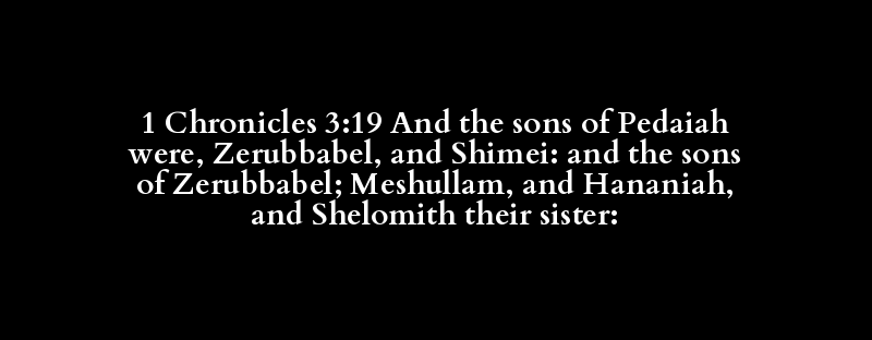 1 Chronicles 3:19 And the sons of Pedaiah were, Zerubbabel, and Shimei: and the sons of Zerubbabel; Meshullam, and Hananiah, and Shelomith their sister: