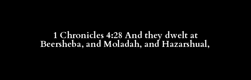 1 Chronicles 4:28 And they dwelt at Beersheba, and Moladah, and Hazarshual,