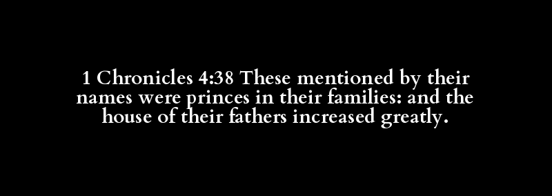 1 Chronicles 4:38 These mentioned by their names were princes in their families: and the house of their fathers increased greatly.