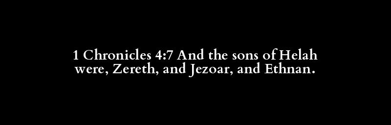 1 Chronicles 4:7 And the sons of Helah were, Zereth, and Jezoar, and Ethnan.