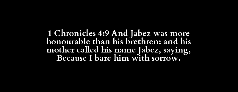 1 Chronicles 4:9 And Jabez was more honourable than his brethren: and his mother called his name Jabez, saying, Because I bare him with sorrow.