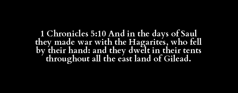 1 Chronicles 5:10 And in the days of Saul they made war with the Hagarites, who fell by their hand: and they dwelt in their tents throughout all the east land of Gilead.