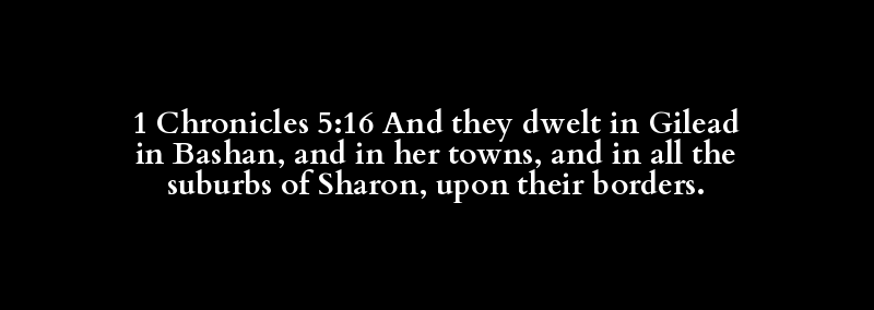 1 Chronicles 5:16 And they dwelt in Gilead in Bashan, and in her towns, and in all the suburbs of Sharon, upon their borders.