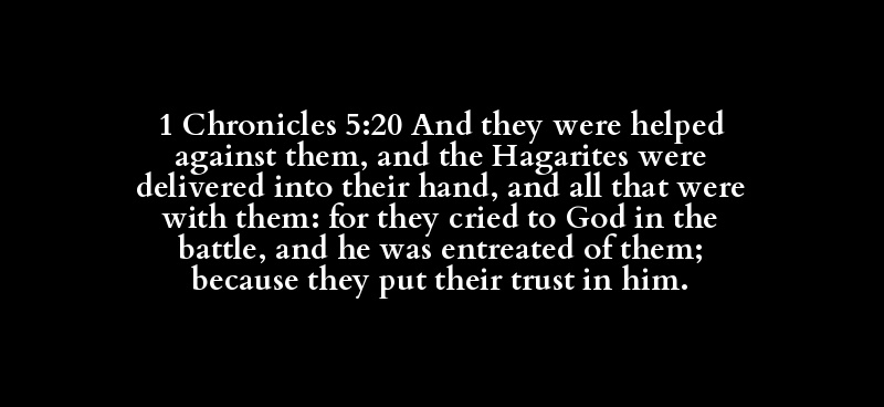 1 Chronicles 5:20 And they were helped against them, and the Hagarites were delivered into their hand, and all that were with them: for they cried to God in the battle, and he was entreated of them; because they put their trust in him.