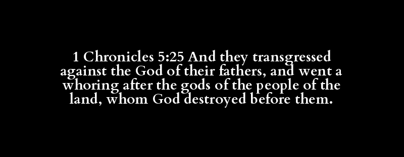 1 Chronicles 5:25 And they transgressed against the God of their fathers, and went a whoring after the gods of the people of the land, whom God destroyed before them.