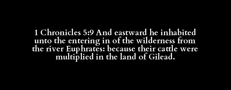 1 Chronicles 5:9 And eastward he inhabited unto the entering in of the wilderness from the river Euphrates: because their cattle were multiplied in the land of Gilead.