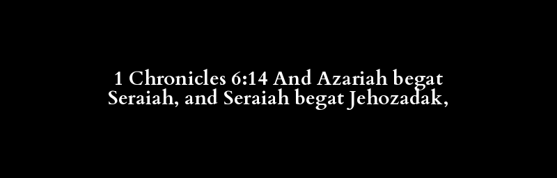 1 Chronicles 6:14 And Azariah begat Seraiah, and Seraiah begat Jehozadak,