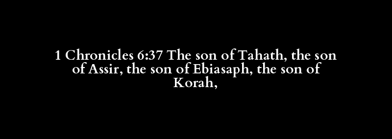 1 Chronicles 6:37 The son of Tahath, the son of Assir, the son of Ebiasaph, the son of Korah,