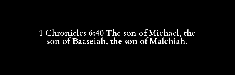 1 Chronicles 6:40 The son of Michael, the son of Baaseiah, the son of Malchiah,