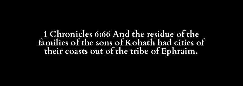 1 Chronicles 6:66 And the residue of the families of the sons of Kohath had cities of their coasts out of the tribe of Ephraim.